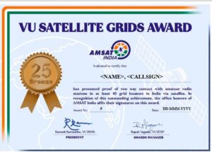 AMSAT INDIA is delighted to announce the launch of the AMSAT INDIA Satellite Awards Program, a new initiative to recognize and celebrate the outstanding achievements of radio amateurs who contribute to the growth and success of amateur satellite communication.This awards program honours operators for their dedication, technical skills, and spirit of experimentation in working through amateur satellites — promoting education, innovation, and global friendship through space-based amateur radio.